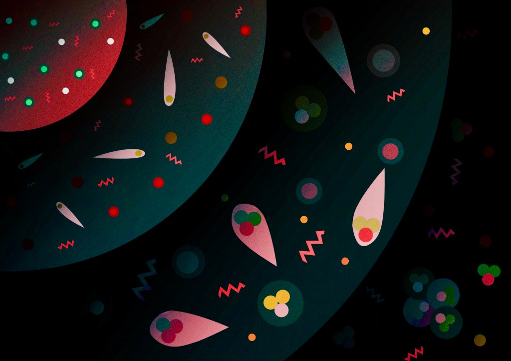 A so called “quark soup” existed in the early Universe at temperatures higher than 1011 K. According to modern concepts, quarks are elementary particles with fractional charge. Protons and neutrons consist of quarks. As a result of Universe expansion, temperature decreases, and quarks start to bind, forming protons and neutrons. Quarks, protons and neutrons are called hadrons. It means these particles participate in the strong interaction.